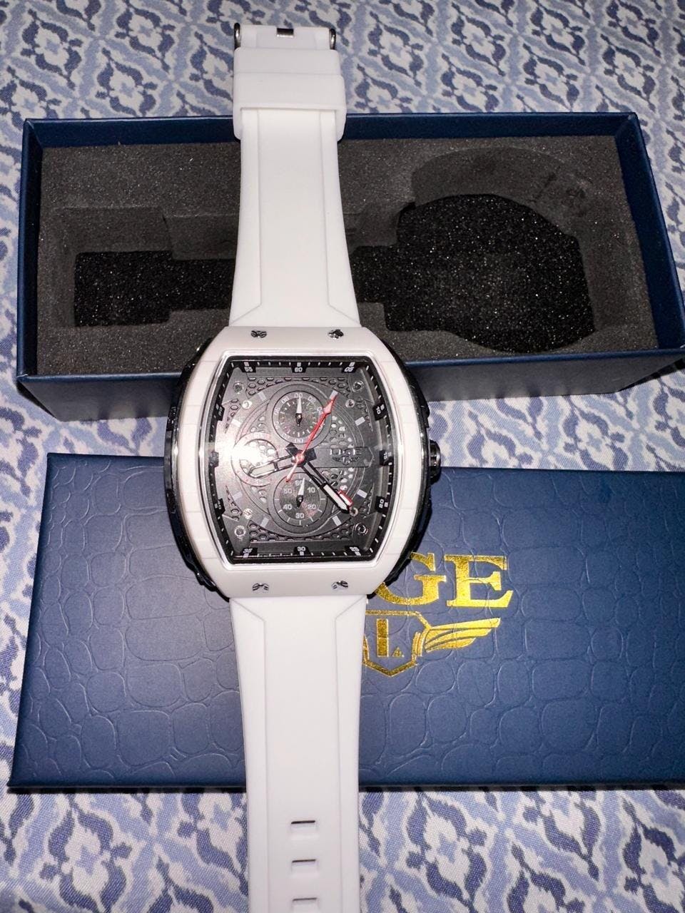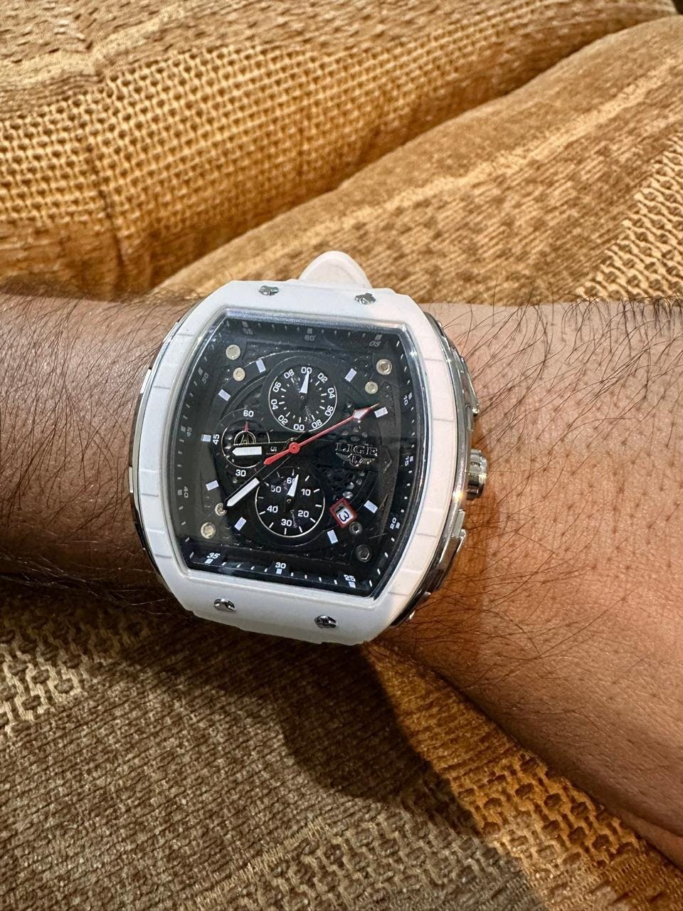 Think about a wonderful watch with a super affordable price? One of the best watches bought so far. It has calendar and chronograph settings. The silicone strap is very soft. It attracts a lot of attention on the street, be careful because it's too beautiful. The only negative point was the silver clasp instead of gold like the box, but nothing that would disapprove. I recommend this watch and the seller.